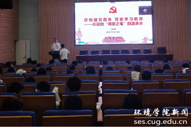 党委副书记王海锋授课,他以“庆祝建党百年 党史学习教育—长征的‘得意之笔’四渡赤水”为主题与同学们进行分享。