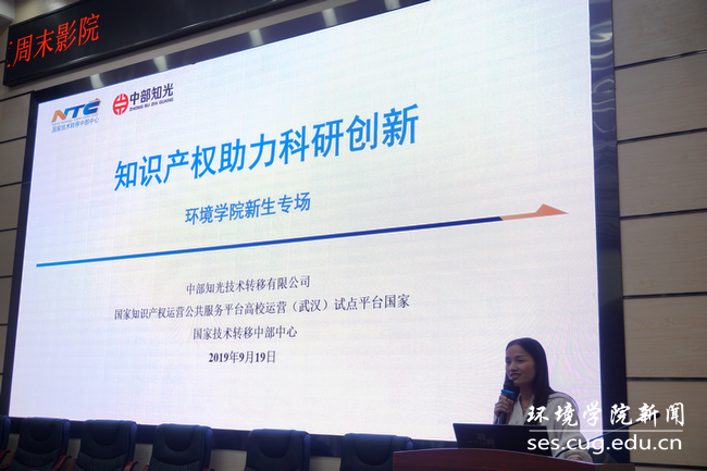 中部知光技术转移有限公司刘文婷老师为全体新生讲解知识产权保护政策。
