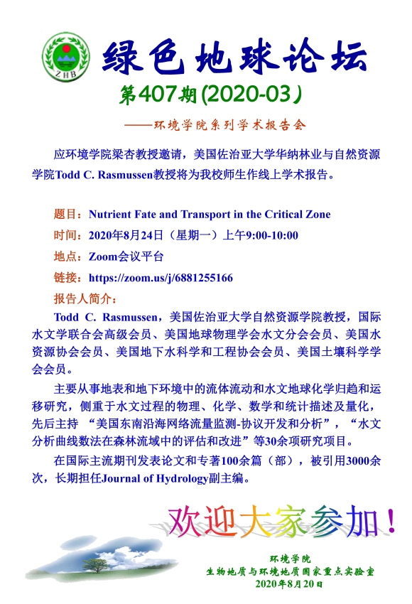 美国佐治亚大学华纳林业与自然资源91短视频 Todd C. Rasmussen教授学术报告